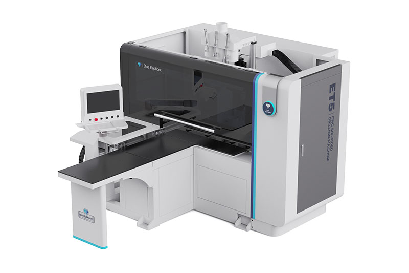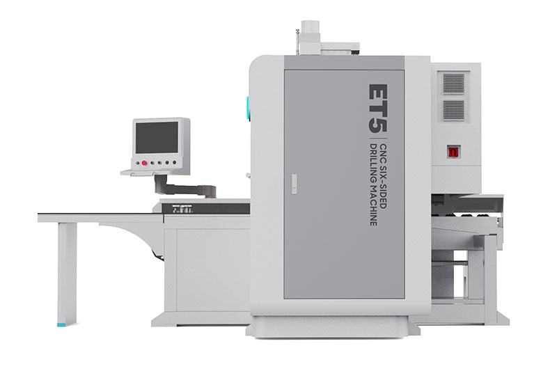 ET5單鉆包六面鉆(緊湊型)數(shù)控鉆孔機(jī)優(yōu)化了機(jī)床整體尺寸,占地面積小,降低運(yùn)輸成本,具有加工效率高,自動化程度高等優(yōu)點(diǎn),通過無線掃碼、自動分揀、自動定位、自動上料加工,可一次性實(shí)現(xiàn)六面加工及前后坡口加工。