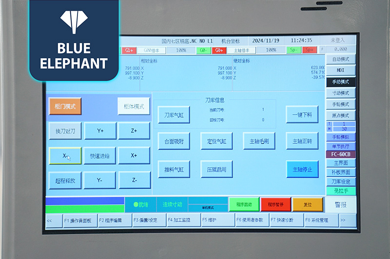 直排式12把刀大容量刀庫,隨龍門移動,自動切換刀具,節(jié)省換刀時間,生產(chǎn)效率高。