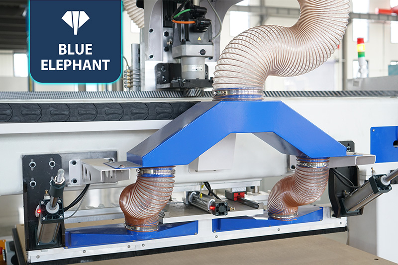 整版真空吸附臺面 ,分7區(qū)吸附,吸附力強,加工中不跑板。