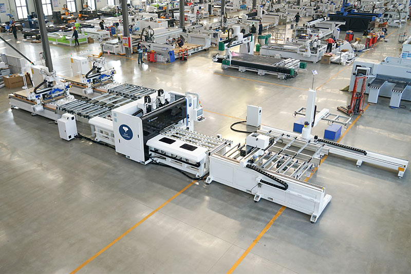 一拖二貼標鉆切單元是一種自動化程度高,效率高、性價比高的板式家具自動化生產(chǎn)方案。操作簡單,只需將加工程序拷入中控系統(tǒng),啟動加工即可,無需再對每臺設備進行操作。中控系統(tǒng)具備開料排程優(yōu)化功能,節(jié)省時間和減少板材浪費。